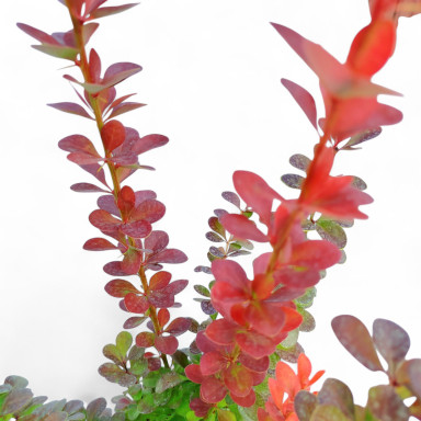 Барбарис Тунберга Вулкано – ще одна цікава новинка серед декоративних барбарисів. Його оригінальне забарвлення викликає справжній вибух емоцій, адже такий яскравий та незвичайний колір листя рідко зустрінеш у рослинному світі. А з огляду на притаманний сорту мінімалізм у догляді та наші доступні ціни, купити такі саджанці для своїх сміливих та несподіваних композицій – дуже правильне рішення.