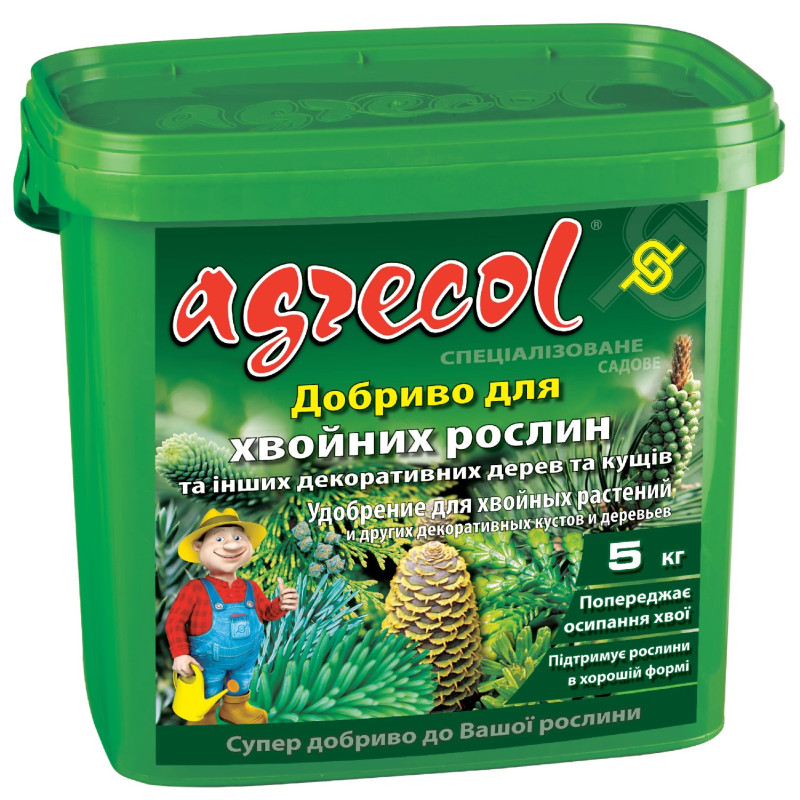 Добриво мінеральне гранульоване Agrecol для хвойних 12-12-19, 5 кг – це комплексне підживлення, спеціально розроблене для хвойних і вічнозелених рослин. Засіб забезпечує культури необхідними поживними елементами для активного росту, формування густої крони та насиченого забарвлення хвої.