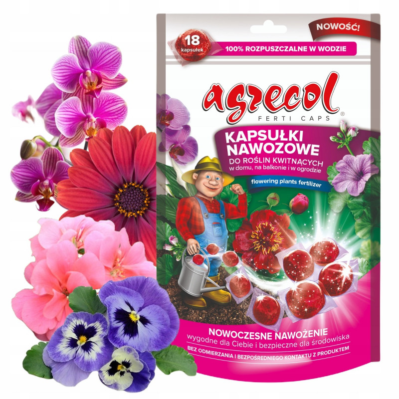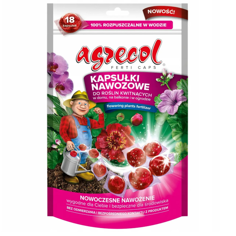 Добриво мінеральне в капсулах Agrecol для квітучих рослин 70 г – це сучасне комплексне підживлення для декоративних культур, які вирощуються в кімнатних умовах, на балконах, терасах або у відкритому ґрунті. Засіб створений для забезпечення рослин усіма необхідними поживними речовинами у період активного росту та цвітіння.