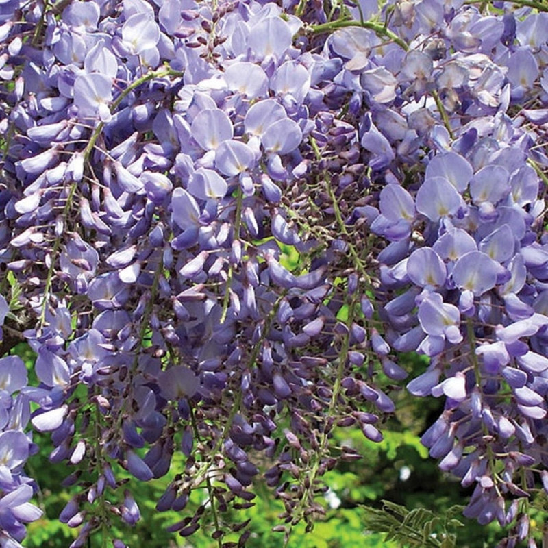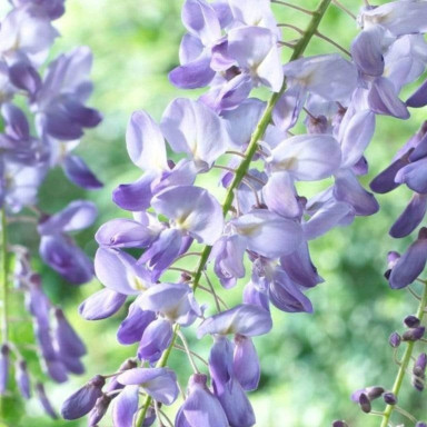 Гліцинія китайська Блю Сапфір (Wisteria sinensis Blue Sapphire) – одна з найефектніших декоративних ліан, яка зачаровує своїм рясним і тривалим цвітінням. Рослина утворює довгі пониклі китиці запашних квітів насичено-блакитного відтінку, що створюють враження живого водоспаду. Сорт відзначається швидким ростом, зимостійкістю та високою декоративністю, завдяки чому користується великою популярністю серед садівників і дизайнерів. Гліцинія Blue Sapphire чудово прикрашає будь-який простір, додаючи йому романтичності та витонченості.