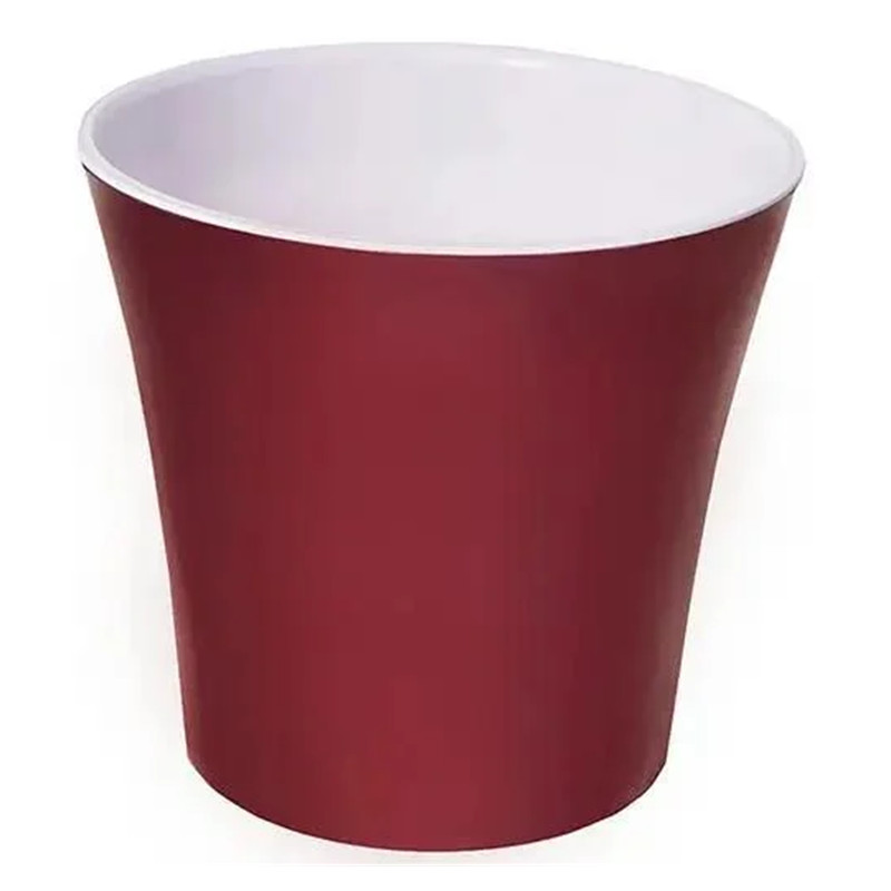 Модель виконана у насиченому бордовому кольорі з контрастною білою вставкою, що створює стильне поєднання відтінків. Такий вазон виглядає елегантно та виразно, тому стане не лише практичним аксесуаром для рослин, а й декоративним елементом у кімнаті, офісі або на балконі.