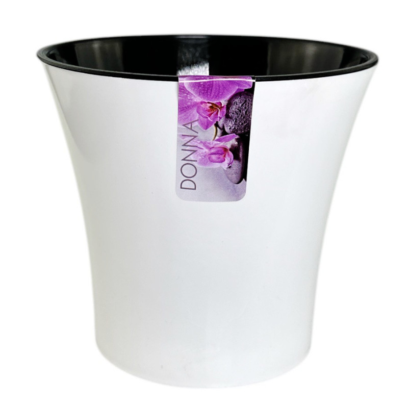 Модель Donna має елегантне поєднання білого кольору з контрастною чорною вставкою, що надає вазону сучасного вигляду. Такий дизайн робить горщик не лише функціональним елементом для вирощування рослин, а й стильним декоративним акцентом у будь-якому просторі.