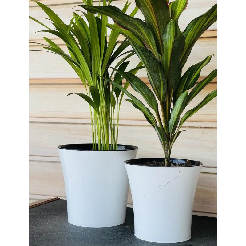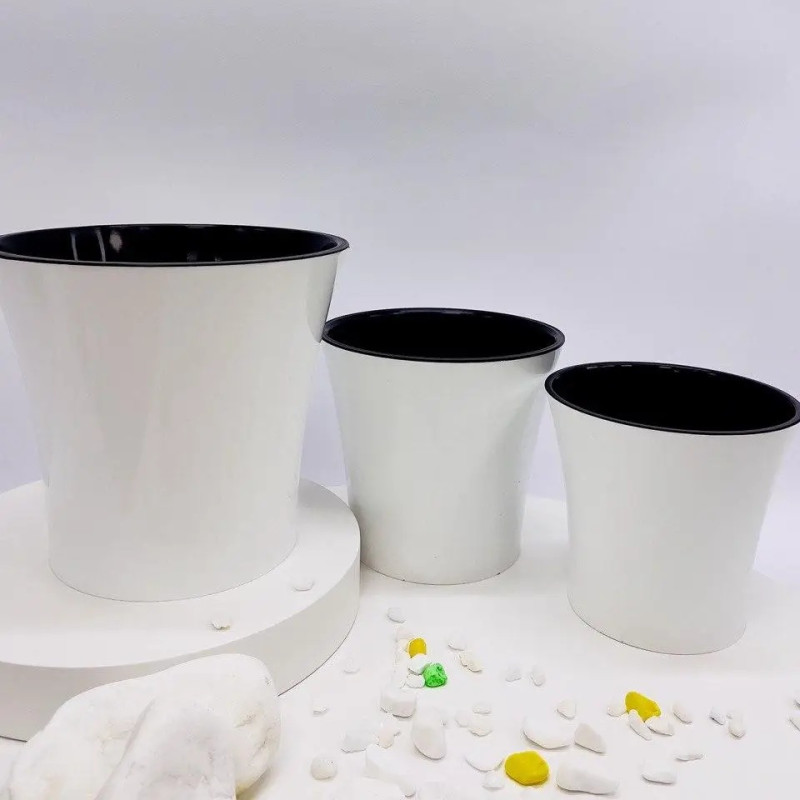Завдяки використанню якісного пластику вазон відзначається міцністю, легкістю та довговічністю. Він не втрачає форму, легко миється та добре переносить регулярний полив. Контрастне поєднання білого корпусу та чорної вставки робить горщик універсальним рішенням для сучасних інтер’єрів.