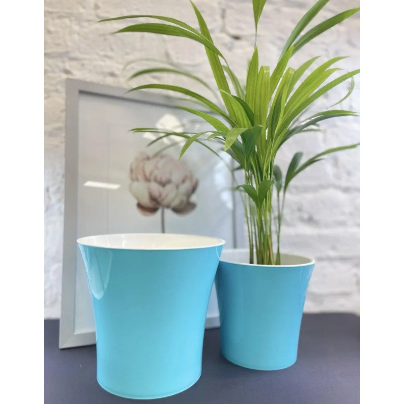 Модель квіткового горщика українського виробництва виконана у ніжному блакитному кольорі з контрастною білою вставкою, що створює легкий та свіжий акцент у просторі. Такий вазон не лише допомагає забезпечити рослинам комфортні умови для росту, а й виступає естетичним елементом декору.