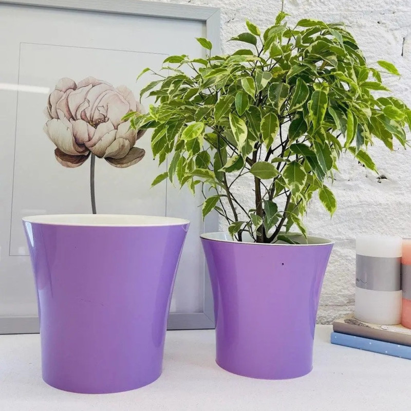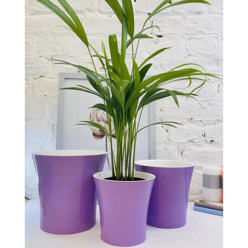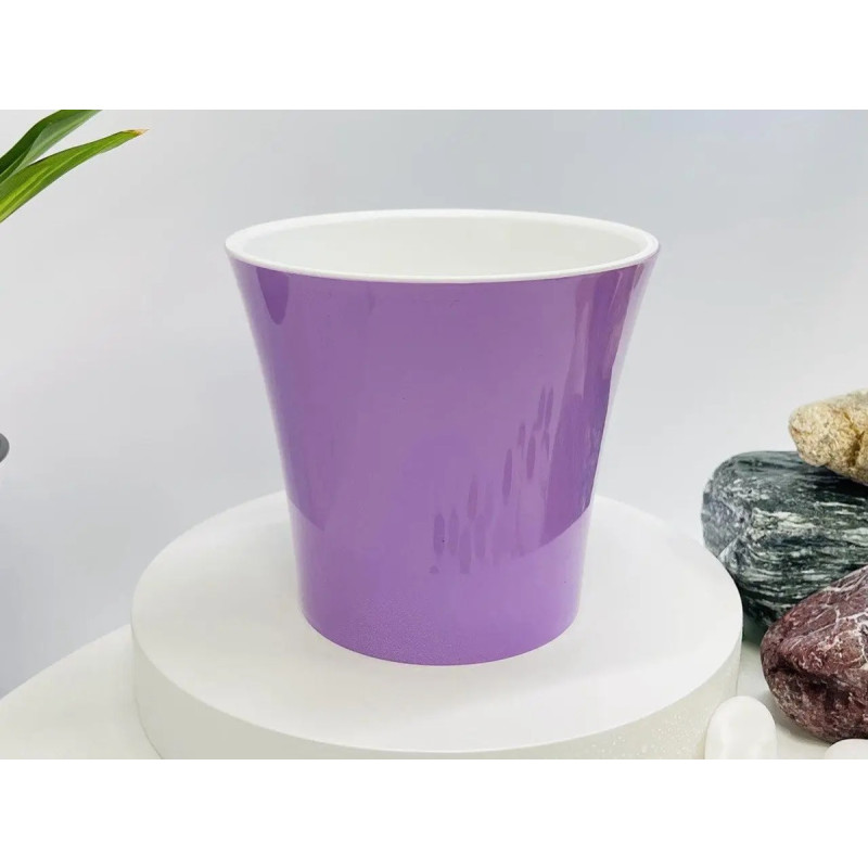 Модель виконана у ніжному лавандовому кольорі з контрастною білою вставкою, що додає вазону легкості та елегантності. Такий дизайн виглядає свіжо та сучасно, підкреслюючи красу кімнатних рослин і роблячи їх справжнім декоративним акцентом у приміщенні.