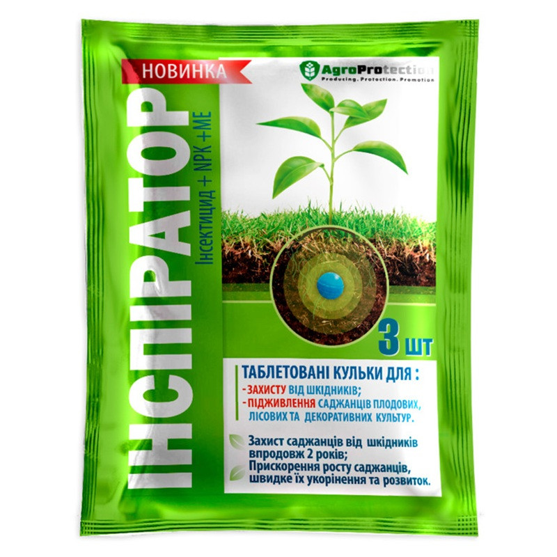 Інсектицидні таблетки Інспіратор – це сучасний комбінований засіб від компанії AgroProtection, який поєднує в собі захист рослин від шкідників та їх підживлення. Препарат містить системний інсектицид імідаклоприд разом із комплексом макро- та мікроелементів, що забезпечує одночасну боротьбу з комахами та підтримку здорового розвитку рослин.