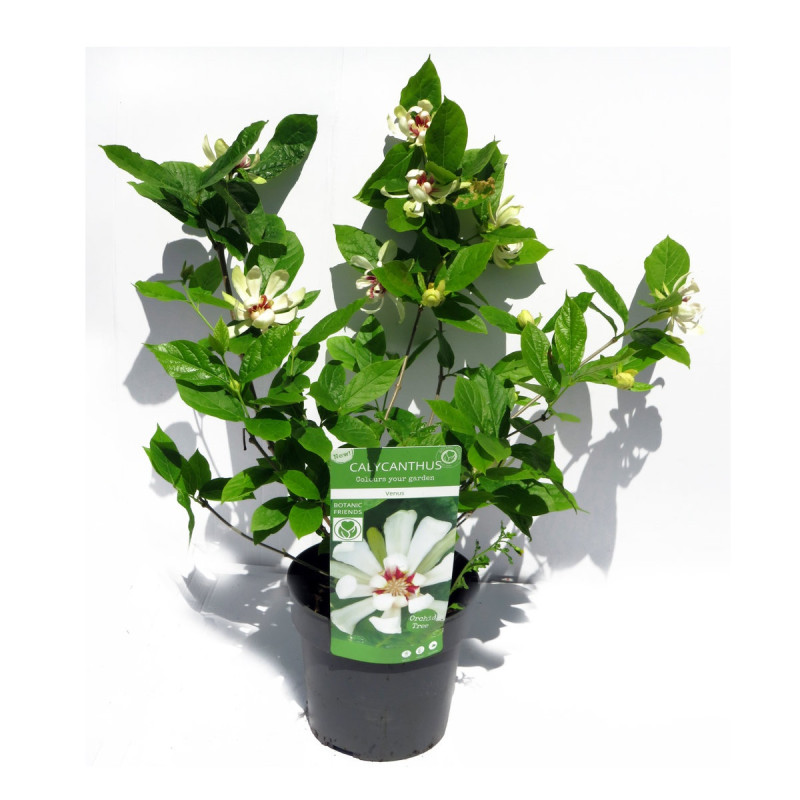 Калікант Раульстона Венус (Calycanthus raulstonii Venus) - потужний кущ, який досягає приблизно 1 метра в ширину і 2 метри у висоту. Особливістю цієї рослини є чудові великі білі квіти з червоною серединкою. Мають приємний аромат, що нагадує яблуко та полуницю.