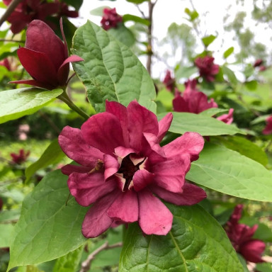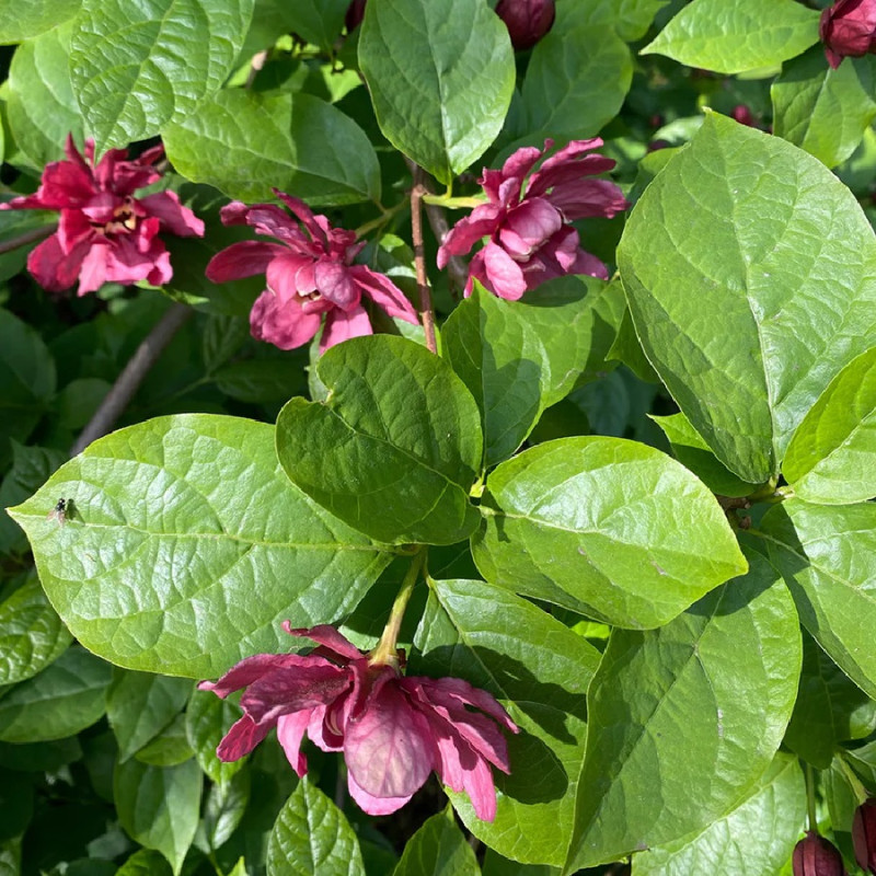 Калікант Раульстона Хартлейдж Вайн (Calycanthus raulstonii Hartlage Wine) – декоративний листопадний кущ, який вражає розкішним цвітінням і благородним виглядом. Цей сорт поєднує у собі витонченість азійських видів каліканта та стійкість північноамериканських, завдяки чому відзначається високою адаптивністю й тривалим періодом декоративності. Великі квіти винно-червоного кольору з ледь помітним ароматом роблять його справжньою окрасою саду, а густе блискуче листя надає кущу доглянутого вигляду протягом усього сезону.