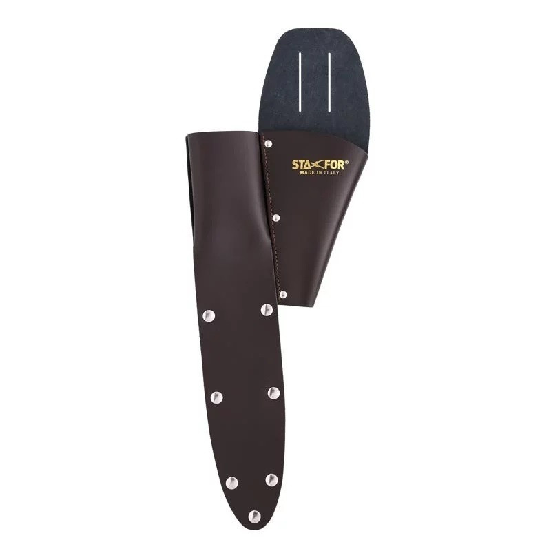 Кобура Stafor 174 вирізняється міцністю та довговічністю завдяки використанню натуральної шкіри. Вона захищає ріжучі інструменти від пилу, вологи та випадкових пошкоджень, що подовжує їхній термін служби. Подвійна конструкція дозволяє одночасно зберігати секатор та пилку, забезпечуючи швидкий і зручний доступ до кожного інструмента під час роботи.