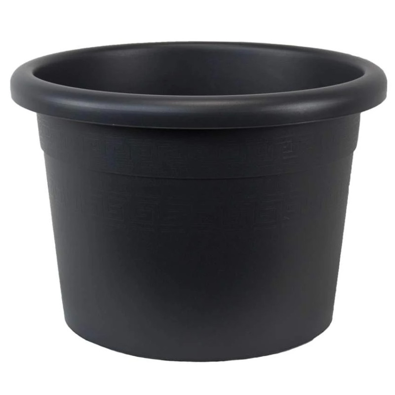 Декоративний орнамент у верхній частині контейнера надає йому особливої естетики, натхненної класичними тосканськими традиціями. Міцний обідок забезпечує зручність під час перенесення горщика, а дно з дренажними отворами сприяє відведенню зайвої води та покращує вентиляцію кореневої системи. Завдяки універсальному дизайну та стриманому антрацитовому кольору він гармонійно доповнить як класичний, так і сучасний ландшафтний стиль.