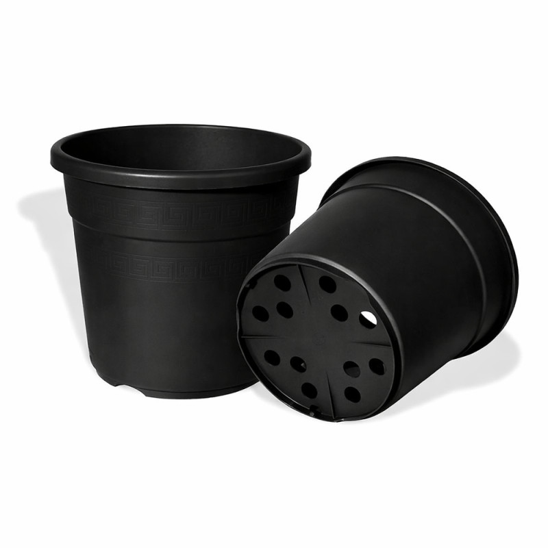 Горщик NOBILIS від відомого італійського бренду IDeL вирізняється елегантним дизайном із подвійним грецьким орнаментом, який додає виробу вишуканості та робить його доречним не лише для технічного вирощування, а й для оформлення декоративних композицій. Чорний колір підкреслює насиченість зелені рослин і гармонійно поєднується з будь-яким стилем екстер’єру чи інтер’єру. Міцний верхній обідок забезпечує зручність перенесення та транспортування навіть при повному заповненні ґрунтом, що особливо важливо для розсадників і активного сезонного використання.
