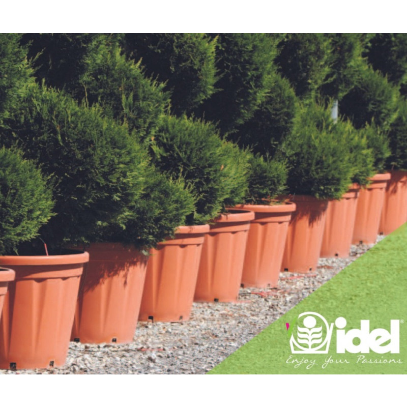 Італійський бренд IDel виготовляє функціональні моделі, які підходять як для великих розплідників, так і для невеликих контейнерних садів. Наприклад, у такому горщику в домашніх умовах можна вирощувати фікуси, пальми або різноманітні штамбові рослини.