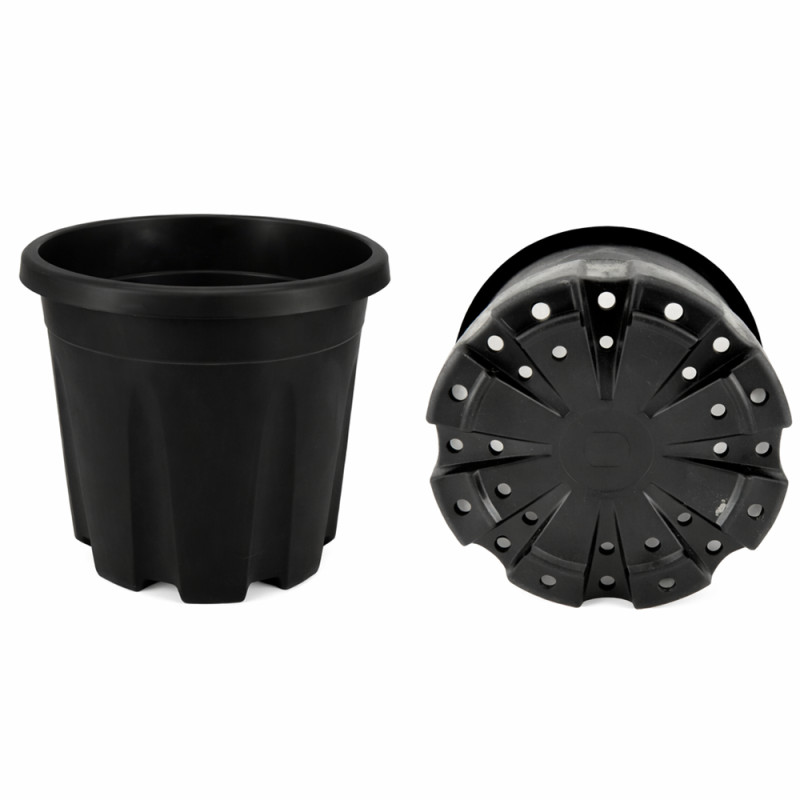 Горщик виготовлений із щільного HDPE-пластику, який відзначається високою міцністю, стійкістю до ультрафіолету та перепадів температур. Ребриста конструкція стінок додає жорсткості, що допомагає контейнеру зберігати форму навіть при заповненні важким субстратом. Міцний обідок у верхній частині забезпечує зручне транспортування та переміщення рослин.