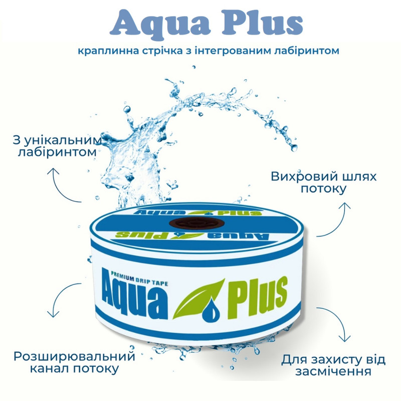 Завдяки міцному матеріалу та стійкості до ультрафіолету, крапельна стрічка Aqua Plus розрахована на використання протягом кількох сезонів, швидко окуповується та сприяє підвищенню врожайності без зайвих витрат.