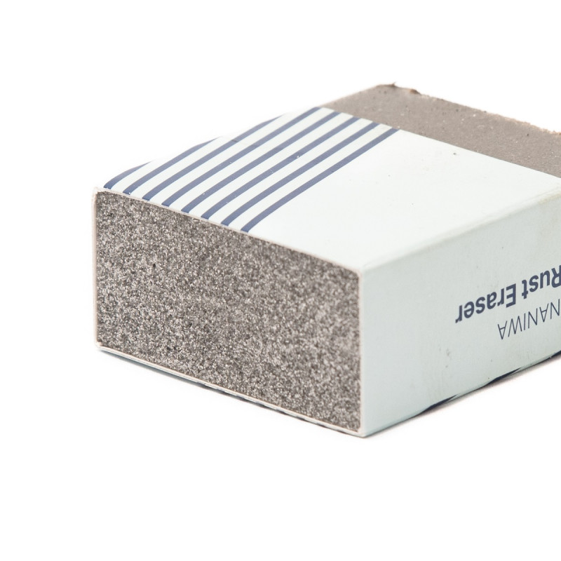 Ластик NANIWA A-903 відрізняється збільшеними розмірами та товщиною у порівнянні з плоскими аналогами, що забезпечує зручний хват і контроль під час очищення. Гнучка структура та рівномірна зернистість дозволяють ефективно видаляти поверхневу іржу, не пошкоджуючи метал та ріжучу кромку інструменту.