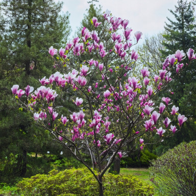 Магнолія Джордж Генрі Керн (Magnolia George Henry Kern) – це надзвичайно красива листопадна рослина, яка вражає своїм ніжним цвітінням і компактною формою. Вона є одним із найстійкіших сортів магнолій, створеним спеціально для вирощування в кліматі з холодними зимами. Квітки George Henry Kern мають чарівне рожево-бузкове забарвлення зовні та ніжно-біле всередині, утворюючи гармонійний контраст і додаючи саду романтичності.
