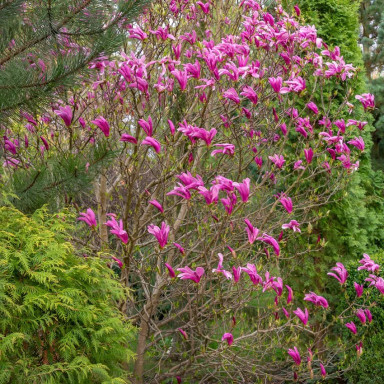 Магнолія гібридна Орчід (Magnolia hybrida Orchid) – ефектна декоративна рослина, що поєднує елегантність і витривалість. Її ніжні квіти з рожево-фіолетовим відтінком нагадують орхідеї, завдяки чому сорт і отримав свою назву. Під час цвітіння магнолія наповнює сад вишуканим ароматом і створює неповторну атмосферу весняної розкоші. Основною перевагою магнолії Orchid є висока морозостійкість, рясне щорічне цвітіння та стійкість до несприятливих погодних умов.