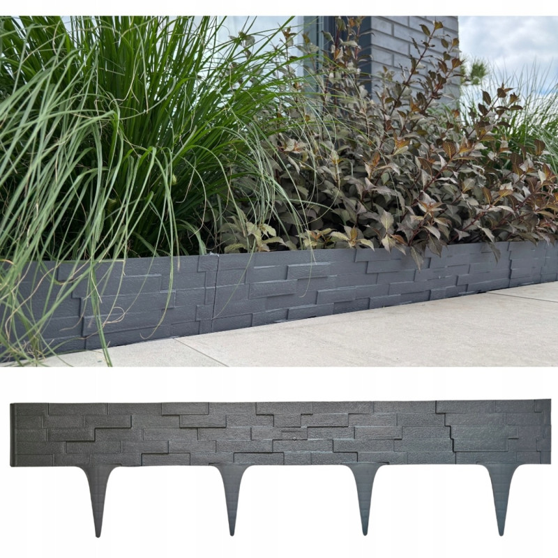 Пластиковий бордюр StonePalisade, антрацит 0,78 м – це сучасне та практичне рішення для оформлення саду, клумб і доріжок. Він допомагає створити акуратні межі між різними зонами ділянки, надаючи ландшафту завершеного та естетичного вигляду. Завдяки стильному дизайну, що імітує сланцеву цеглу, бордюр гармонійно вписується як у класичні, так і в сучасні садові композиції.