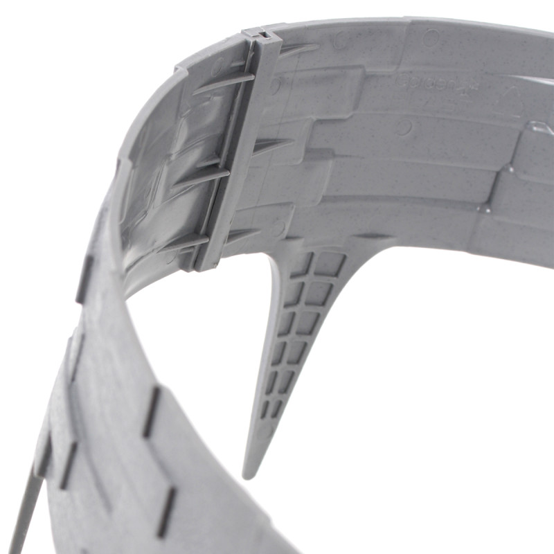Цей садовий елемент виготовлений із міцного та гнучкого пластику, стійкого до впливу погодних умов. Його конструкція дозволяє легко змінювати форму – створювати прямі лінії, плавні вигини або навіть круглі композиції, що робить бордюр універсальним для різних дизайнерських рішень.