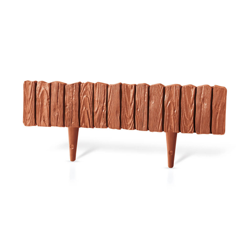 Пластиковий бордюр WoodPalisade, теракотовий, 0,58 м – це стильний і функціональний елемент для оформлення ландшафту, який допоможе вам створити акуратні та чіткі межі між газоном, клумбами, доріжками чи іншими ділянками на вашій території. Виготовлений із високоякісного пластику, цей бордюр імітує текстуру та колір натурального дерева, надаючи вашому саду естетично привабливого вигляду.