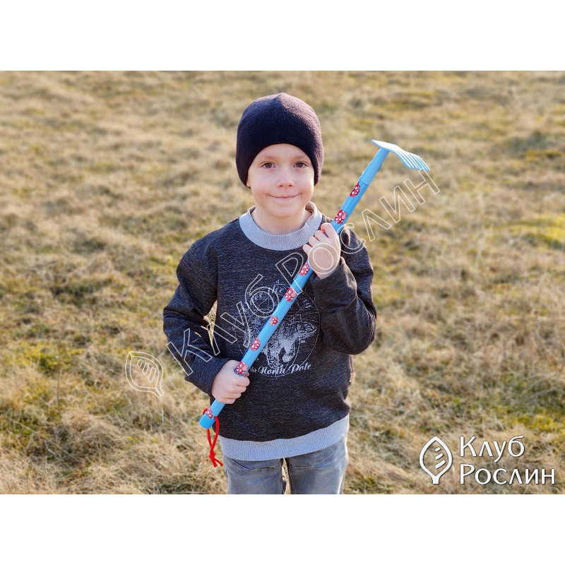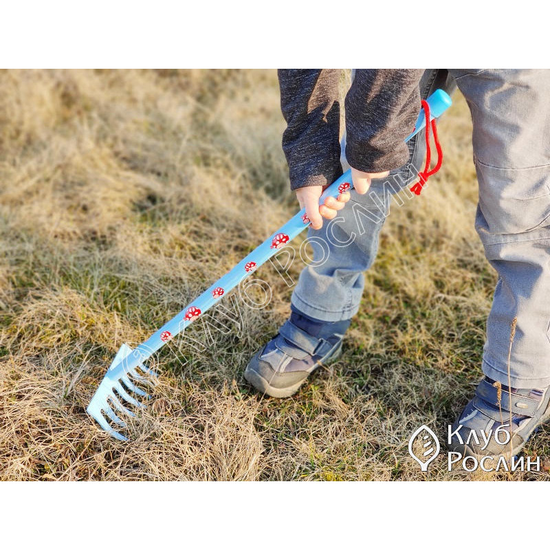 Дерев’яна ручка має оптимальну довжину (80 см) та комфортно лягає в дитячу долоньку. Вона гладко відшліфована, розписана безпечними фарбами й забезпечує надійний хват. Граблі достатньо легкі, щоб дитина могла працювати без втоми, але водночас достатньо міцні, щоб виконувати реальні садові завдання.