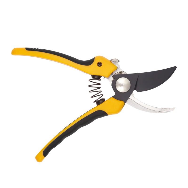 Ергономічні ручки з ударостійкого жовтого пластику з гумовими вставками комфортно лежать у руці та не вислизають під час роботи. Невелика вага (170 г) і наявність амортизатора роблять секатор надзвичайно зручним навіть при тривалому використанні. Завдяки компактній довжині 19,3 см модель ідеально підходить для садівників із невеликою або середньою долонею.