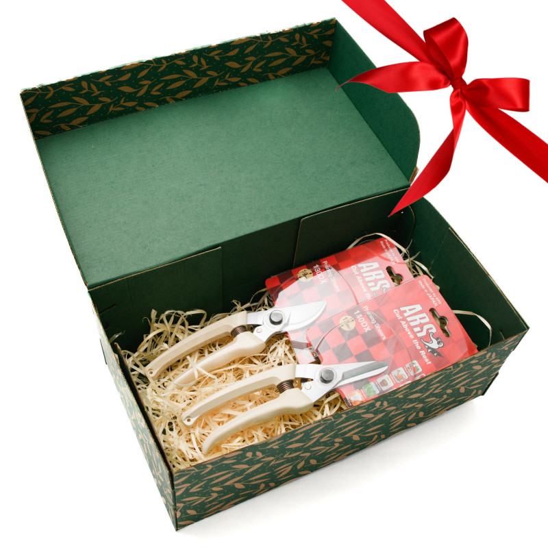 Подарунковий набір складається з двох преміальних інструментів від відомого японського бренду ARS: секатора АРС 130DX та універсальних ножиць АРС 140DX. Це компактний, зручний і надзвичайно якісний комплект, який чудово підходить для точних садових робіт, обрізки квітів, тонких пагонів, декоративних рослин, зелених живців і винограду.