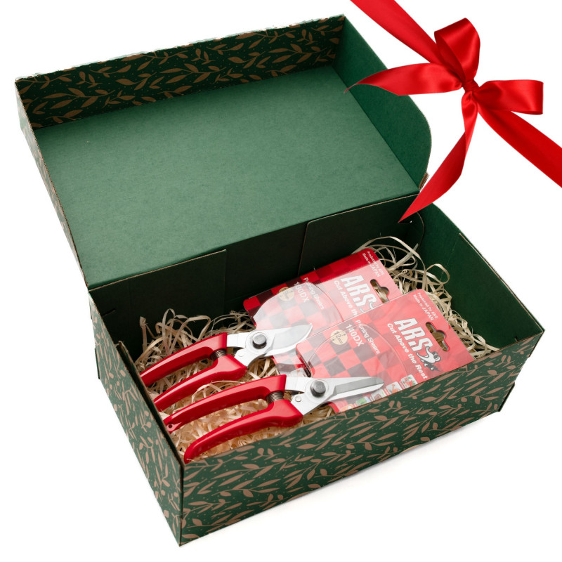 Подарунковий набір складається з двох преміальних інструментів від відомого японського бренду ARS: секатора АРС 130DX та універсальних ножиць АРС 140DX. Це компактний, зручний і надзвичайно якісний комплект, який чудово підходить для точних садових робіт, обрізки квітів, тонких пагонів, декоративних рослин, зелених живців і винограду.