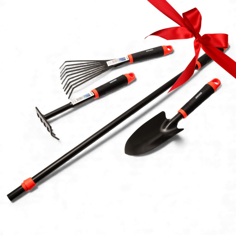 Цей комплект ідеально підходить для різноманітних садових робіт – від розпушування ґрунту до прибирання листя та пересадки рослин.