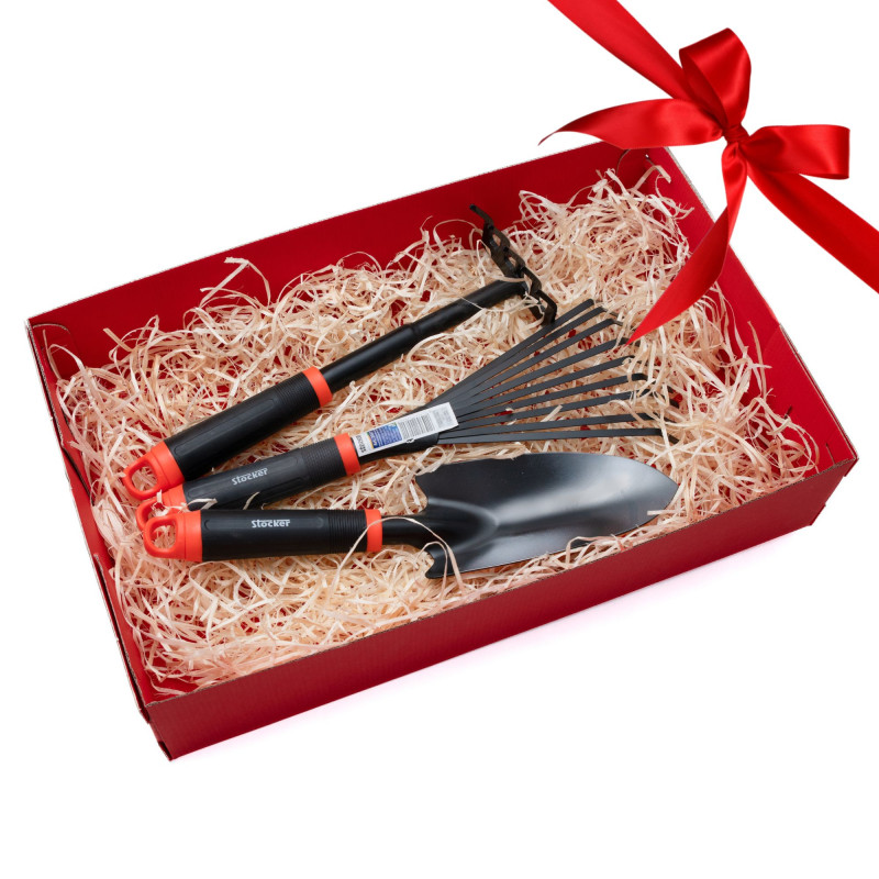 Подарунковий набір садових інструментів Stocker 2012+2002+2037 – це практичне та стильне рішення для догляду за клумбами, грядками й декоративними насадженнями. До комплекту входять три найзатребуваніші ручні інструменти: грабельки для квітів Штокер 2012, широка лопатка-совок Штокер 2002 та віялові грабельки Штокер 2037, які допоможуть виконувати більшість дрібних садових робіт швидко та акуратно.