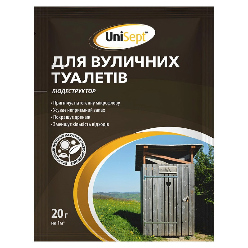 UniSept – естественное решение для чистоты, безопасности и свежести вашего уличного туалета. Купить биопрепарат для уличных туалетов UniSept 20 г (Унисепт), а также другие экологичные средства по уходу за садом и огородом предлагаем в интернет-магазине «Клуб Растений». Качественные товары для садоводства по лучшей цене отправляем надежными почтовыми службами во все уголки Украины.