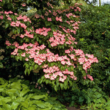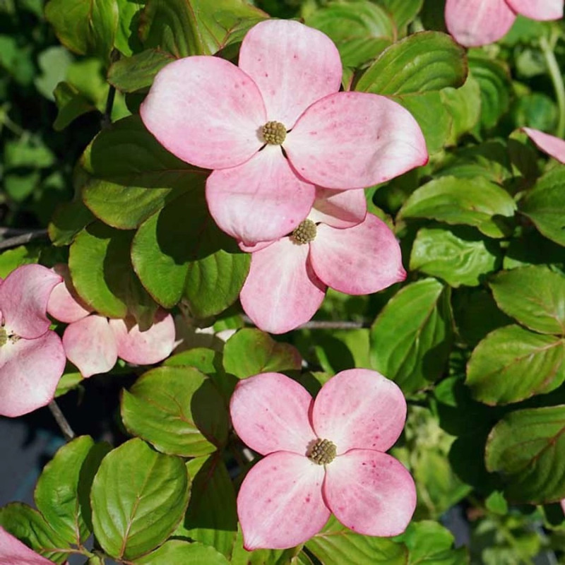 Дерен (кизил) коуза Сатоми Компакт (Cornus kousa Satomi Compact) – необыкновенно декоративный компактный сорт, поражающий своим цветением и гармоничной формой. Весной он покрывается большими цветами с нежно-розовыми прицветниками, которые постепенно приобретают более насыщенный цвет. Летом растение радует густой зеленой кроной, а осенью удивляет яркой окраской листьев – от оранжевых до малиновых. Такое сезонное изменение цветов делает кизил Сатоми Компакт универсальным акцентом в саду, который остается привлекательным в течение всего года.