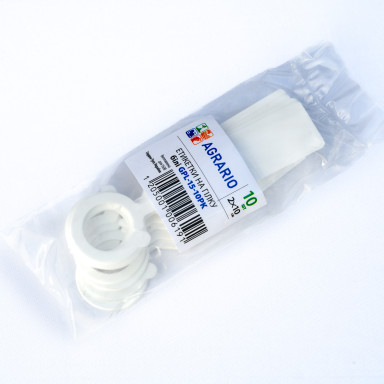 Этикетки Agrario изготовлены из прочного ПВХ, что обеспечивает их устойчивость к влаге, солнечным лучам и изменениям температуры. Материал не выгорает и не расслаивается даже при продолжительном использовании на открытом воздухе. Белый цвет обеспечивает хорошую контрастность для нанесения надписей маркером или карандашом, что гарантирует удобство считывания информации.