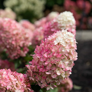Гортензия метельчатая Ливинг Расберри Пинк (Hydrangea paniculata Living Raspberry Pink) – яркий представитель метельчатых гортензий с раскидистой формой куста и роскошными соцветиями, изменяющими окраску в течение сезона. Сначала бутоны имеют нежно-розовый оттенок, постепенно переходящий в насыщенный малиновый, создавая эффект плавного цветового перехода. Растение поражает своим декоративным видом с начала лета до поздней осени, неприхотливо в уходе, морозостойко и хорошо переносит городские условия.