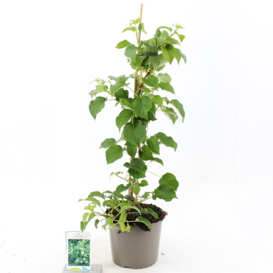 Цветет эта лиана в июне-июле, ее мелкие белые цветочки собраны в зонтичные соцветия. Листья гортензии черешчатой - округлые, небольшие, слегка зубчатые по краям. Перед опаданием осенью листья желтеют. Гортензия этого сорта относится к быстро растущим сортам, в высоту взрослая лиана достигает 20 метров. Лучше всего этот вид растет в полутени, в богатых органическими веществами почвах с кислой или нейтральной реакцией.