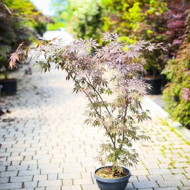 Клен пальмолистный Суминагаши (Acer palmatum Suminagashi) – это невысокое листопадное дерево, которое способно усовершенствовать композицию любого сада. Этот сорт клена ценят за яркий цвет листьев и компактные размеры, которые позволяют украсить растением даже небольшие участки. Для клена этого сорта характерен медленный темп роста. Особенно прекрасен клен Суминагаши осенью, когда его листья окрашиваются в темно-багровый цвет.