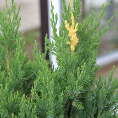 Среди китайских можжевельников почетное место занимает сорт Стрикта Вариегата (Juniperus chinensis Stricta Variegata). Это растение отличается уникальной окраской хвои – куст облачен в зеленовато-голубой цвет с вкраплениями нежного кремового оттенка. Такой красавец станет изумительным дополнением любого современного сада.