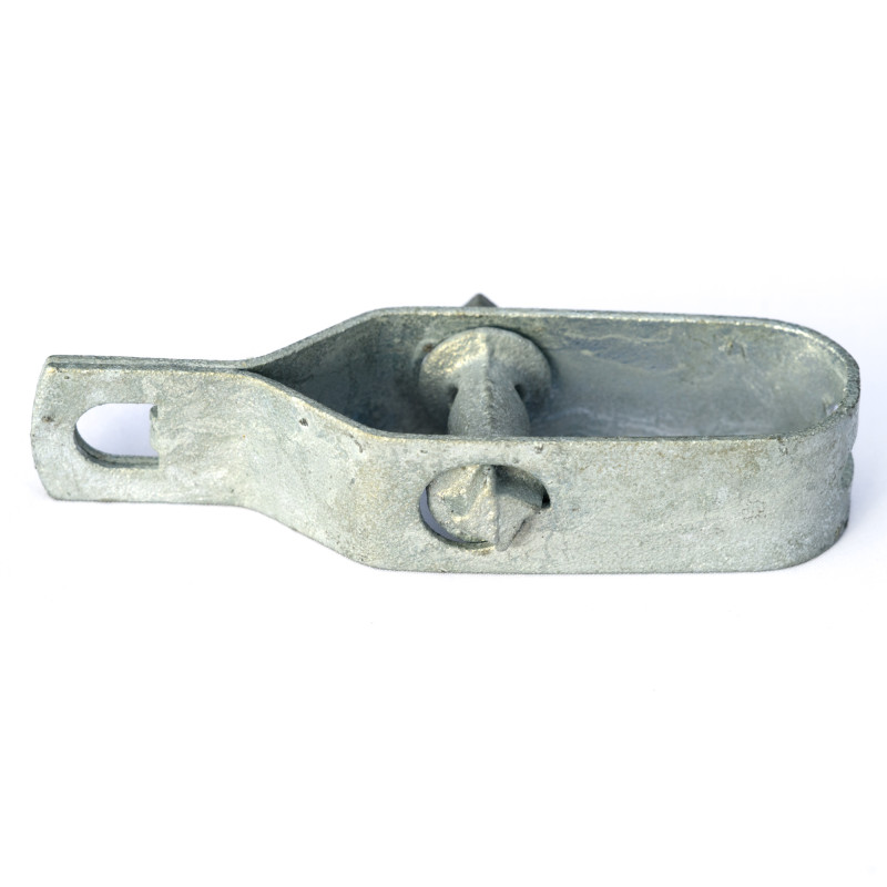 Проволочный натяжитель изготовлен из оцинкованной стали, что обеспечивает ему высокую прочность, стойкость к коррозии и долговечность даже при использовании на открытом воздухе. Благодаря продуманной конструкции устройство легко устанавливается: достаточно закрепить его на опоре, протянуть провод через отверстия корпуса и валика, после чего вращением вала натянуть проволоку до желаемого уровня. Специальный стопор надежно фиксирует положение, не допуская самопроизвольного ослабления.