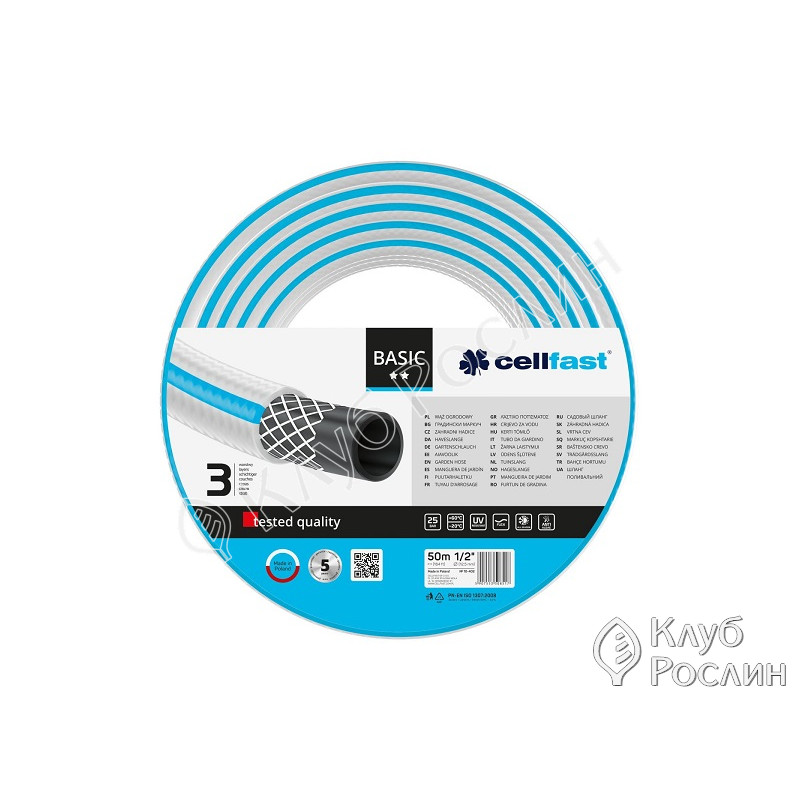 Поливочный шланг Cellfast BASIC 1/2 дюйма 50 м садовый трехслойный, 10-402 от польского производителя обладает наилучшими эксплуатационными свойствами. Он предназначен для садово-огородных работ на даче, приусадебном участке или в теплице и способен существенно облегчить полив большого огорода или сада.