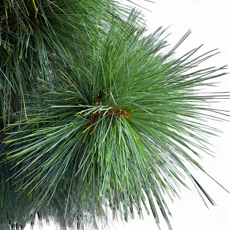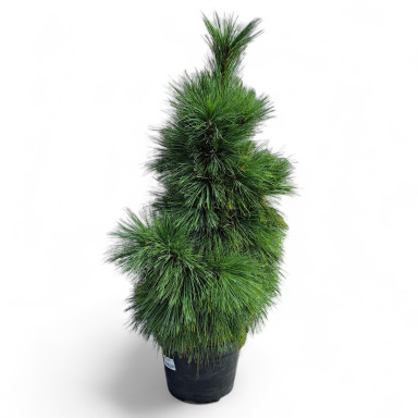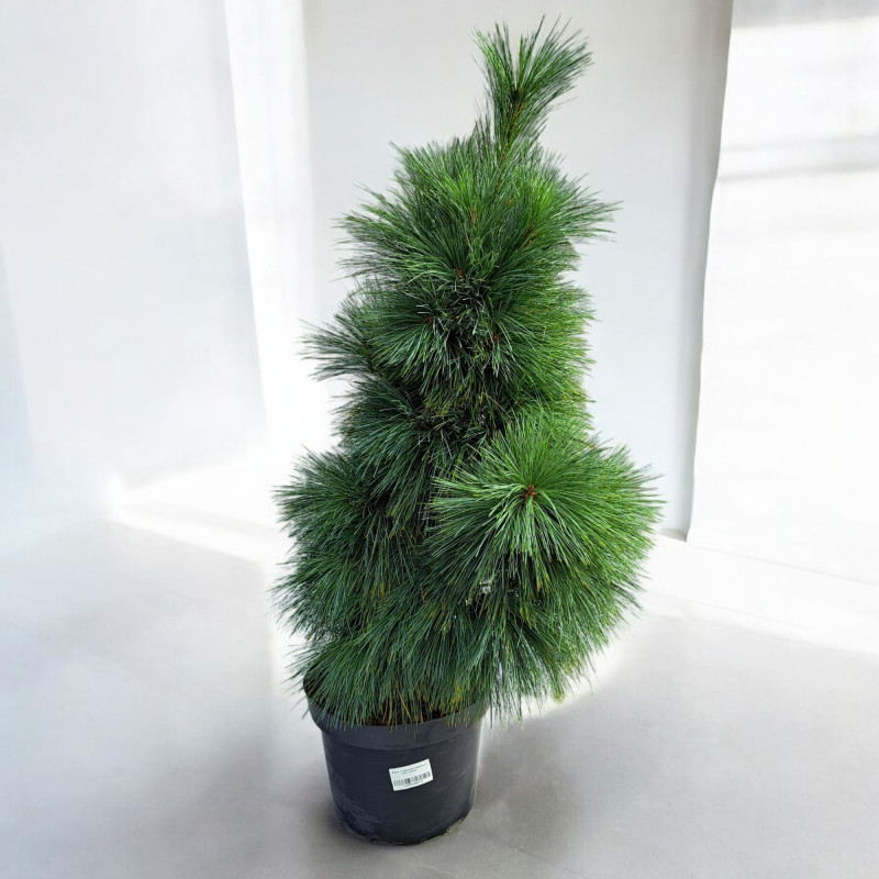 Эта форма сосны Шверина является карликовой, медленно растущей версией сосны, с симметричным, пирамидальной формы габитусом и плотной кроной. Хвоинки ее имеют красивый серебристый сине-зеленый оттенок, достигают длины 10-12 см и растут по одной. Растение не разрастается в ширину, так что для поддержания компактной формы не требуется обрезка. Данный сорт обладает достоинствами обоих своих прародителей - он зимостоек, как веймутова сосна, и обладает высокими декоративными качествами, как гималайская. Способен выдерживать температуры до -34°C.
