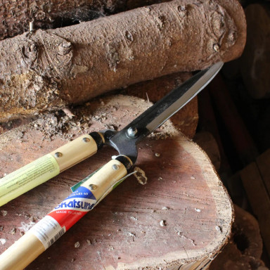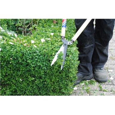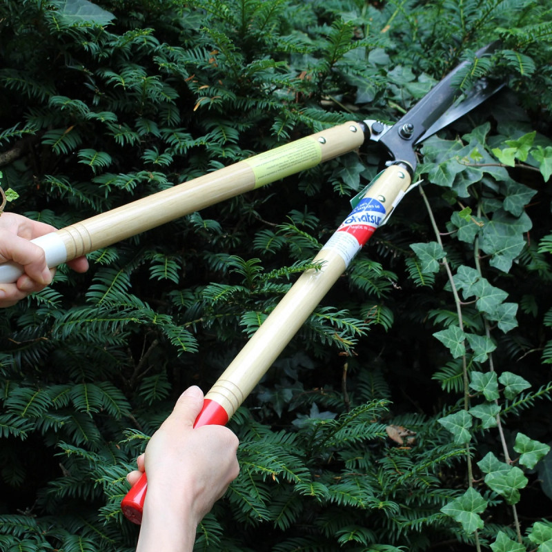Большие деревянные ручки и удлиненные лезвия ножниц обеспечивают широкий рабочий ход и позволяют легко доставать до глубоких участков крон. Инструмент позволяет работать в труднодоступных местах и сохранять естественную осанку, поскольку срезы можно производить ниже уровня рук без наклонов.