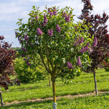 Сирень обыкновенная Чарльс Джоли Штамб (Syringa vulgaris Charles Joly Stam) – элегантная декоративная форма известного сорта сирени, отличающаяся обильным цветением и привлекательной кроной. Этот сорт имеет насыщенную пурпурно-красную окраску соцветий, которые раскрываются в мае, наполняя сад непревзойденным ароматом. Благодаря прививке на штамб растение приобретает изящную, древовидную форму, что делает ее эффектным акцентом в любом ландшафте. Главным преимуществом сирени Charles Joly является его выносливость к морозам и неприхотливость в уходе.