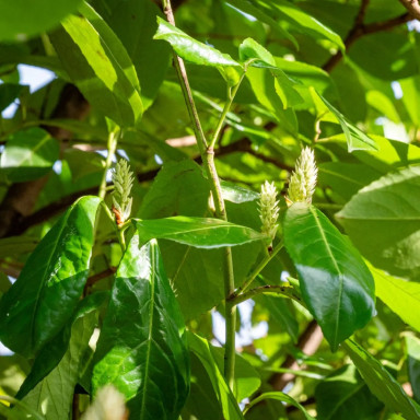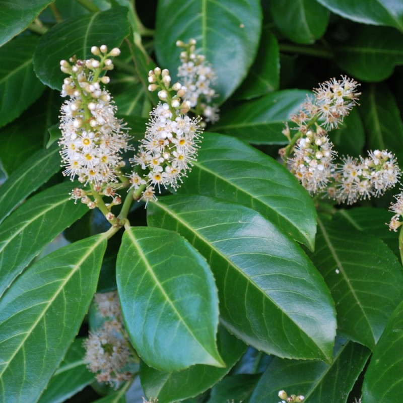 Слива лавровая (Лавровишня) Ротундифолия (Prunus laurocerasus Rotundifolia) – вечнозеленый декоративный кустарник или небольшое дерево, сочетающее привлекательность блестящих темно-зеленых листьев с неприхотливостью в уходе. Этот сорт отмечается округлым, густым габитусом и крупными, эллиптическими листьями насыщенного цвета, что создает плотную зеленую массу даже зимой.