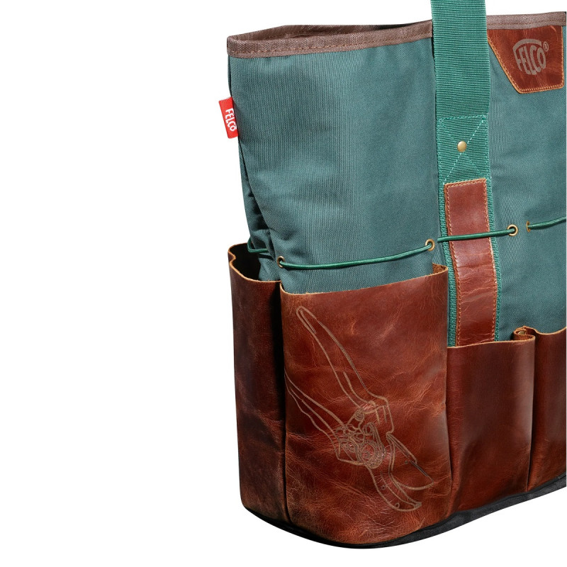 Сумка Felco 481 отличается высоким качеством материалов, что гарантирует длительный срок службы и надежность в любую погоду. Водоотталкивающее зеленое полотно защищает содержимое сумки от влаги, а карманы из вощеной буйволовой кожи выглядят не только эффектно, но и обеспечивают прочность и безопасность инструментов. Дополнительное укрепление нижней части из коровьей кожи помогает сохранить сумку в отличном состоянии даже при интенсивном использовании.