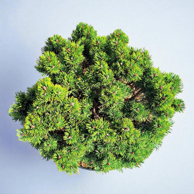 Крона щільна, густа, симетрична. Хвоя довга (до 4,5-5,5 см), тонка, блискуча, на старих пагонах розташована радіально, на молодих щільно притиснута, насичено-зеленого кольору.
