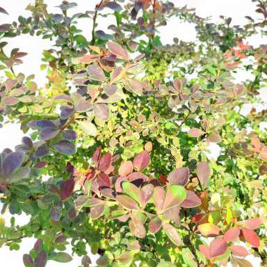 Барбарис Тунберга Голден Рінг – яскравий представник листопадних чагарників з розкидистою формою крони. Гілки культури гарно розгалужені, вкриті гострими шипами. Цінують цей сорт за унікальне забарвлення листя – вони мають пурпурово-червону серединку і жовту, або жовто-зелену облямівку.