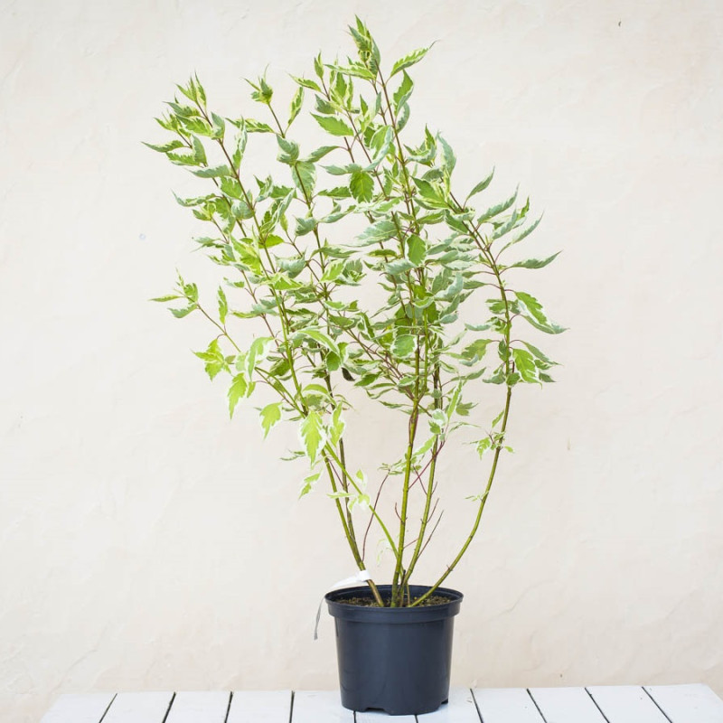 Cornus alba Elegantissima – довговічний чагарник, що має тонкі декоративні вертикальні пагони незвичайного червоного кольору. Листя яйцевидне, з гострими кінцями, сірувато-зелені з білими смугами посередині.