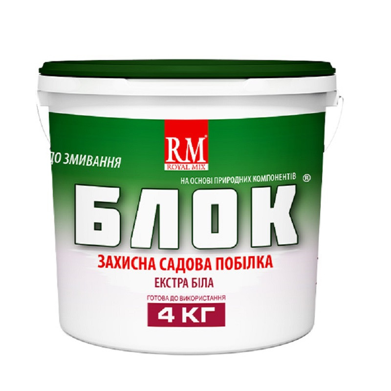 Пропонуємо купити захисну фарбу для дерев та кущів БЛОК екстра біла 4 кг за доступною ціною в інтернет-магазині «Клуб Рослин». Разом із садовою побілкою ви можете замовити також інші засоби захисту рослин та різноманітні товари для садівництва. Доставку замовлень здійснюємо надійними поштовими компаніями по всій території України.
